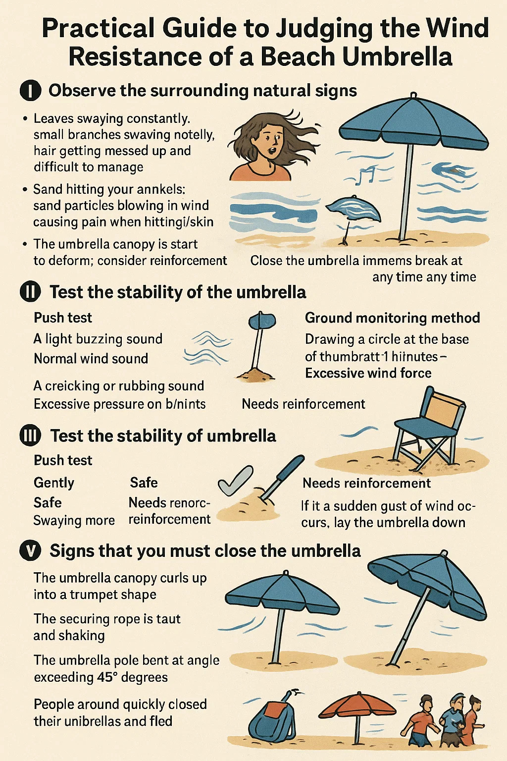Her er en praktisk veiledning for å bedømme vindmotstanden til en strandparasoll :