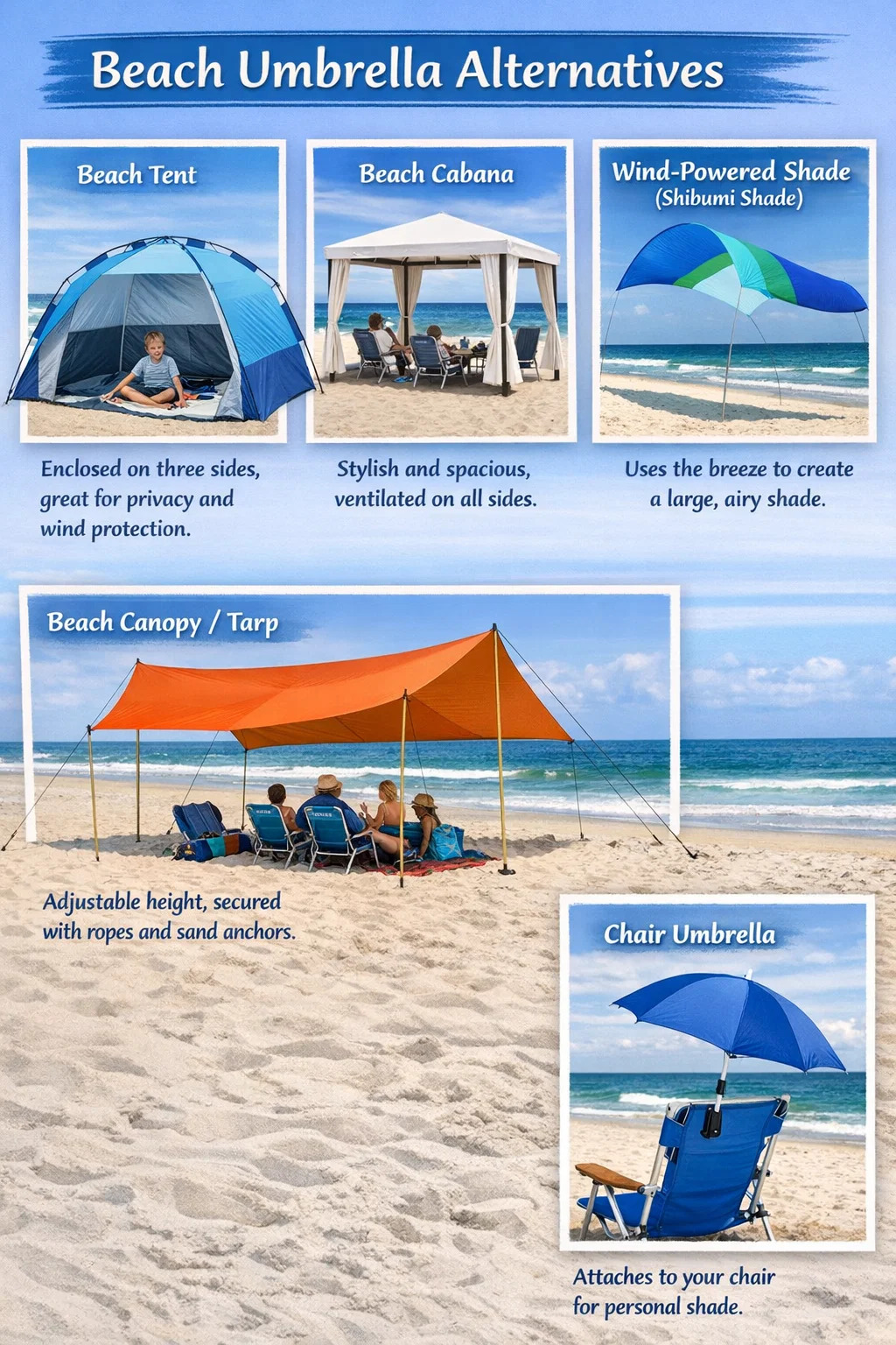 Hvis du synes det er for plagsomt å bære eller sette opp en strandparasoll, eller bekymre deg for at den skal bli blåst bort av vinden, finnes det mange mer stabile alternativer med større skyggelagte områder på markedet.